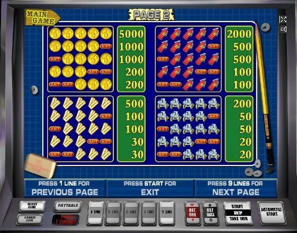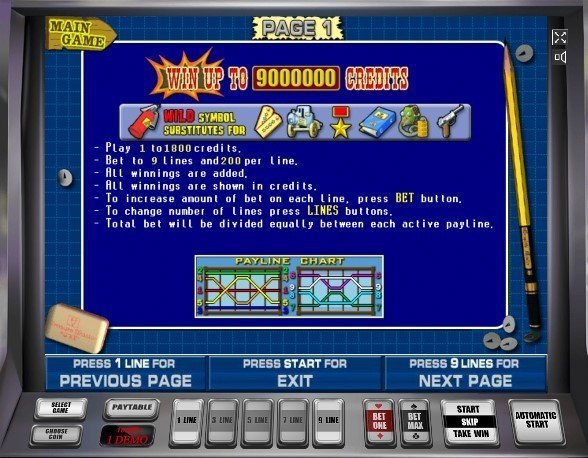 Получивший второе название «Сейфы» слот располагает девятью активными линиями и широким разнообразием бонусных опций. Символьный ряд представлен изображениями различного оружия, золотой монеты, огнетушителя, погонов, книги, ордена со звездой и другими тематическими картинками, обеспечивающими создание призовых комбинаций.