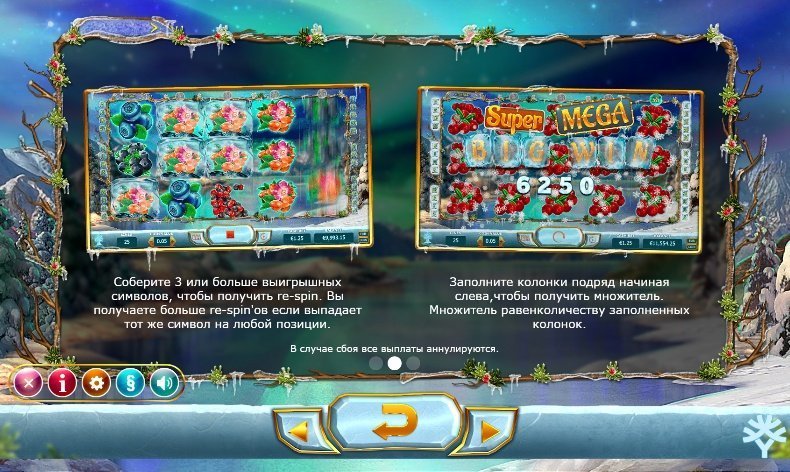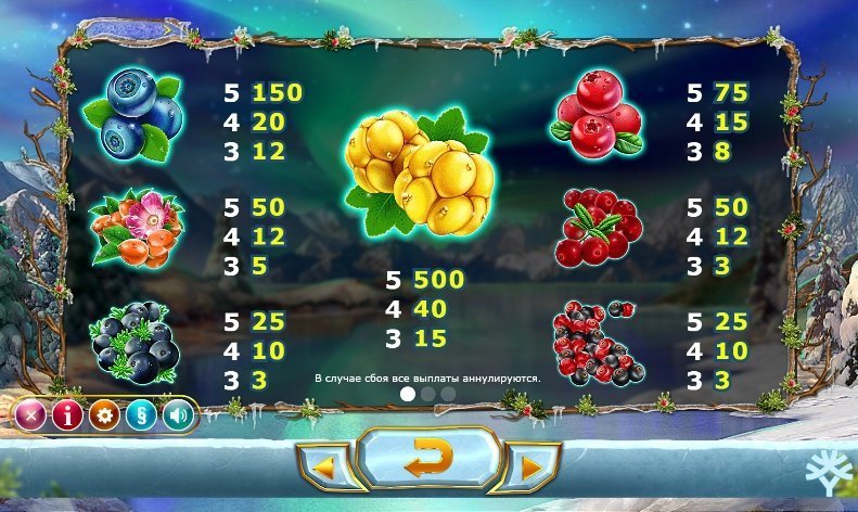 На этом и построен игровой процесс слота Зимние Ягоды. Благодаря функции заморозки нередко удается улучшить уже собранную последовательность, доведя ее до максимального значения. Так что данная модель потенциально является одной из самых прибыльных.